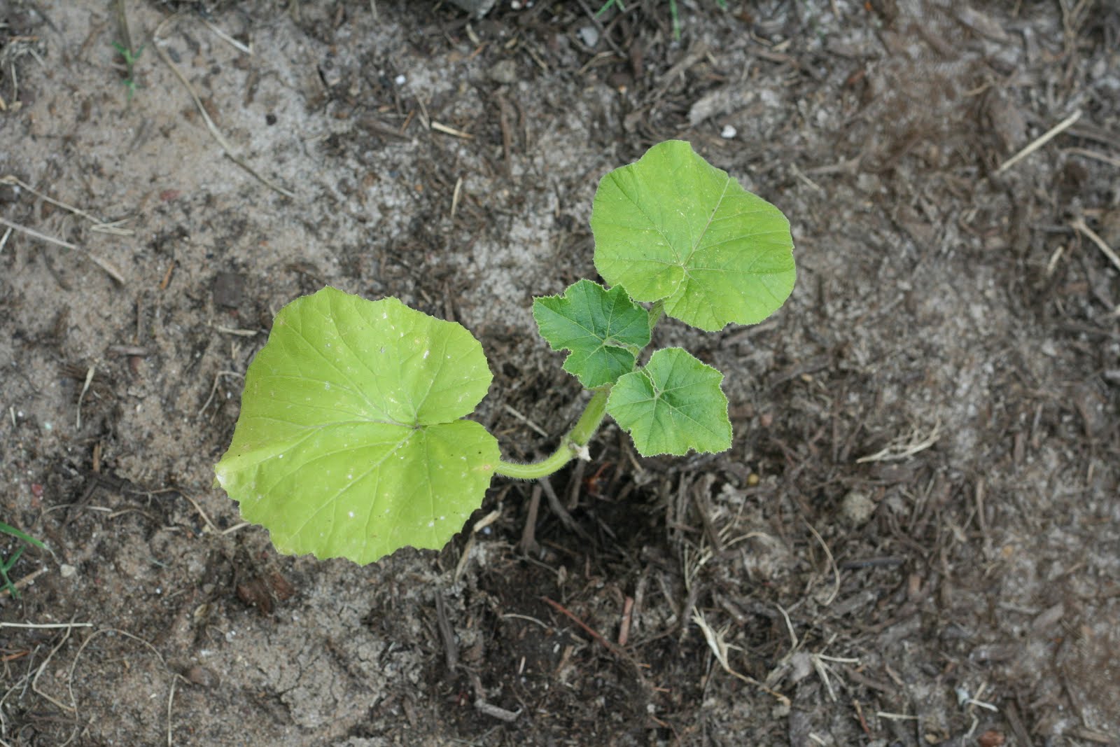 My kids brought home Dixie cups filled with dirt (and supposedly seeds) from school, of course, and only one survived. Supposedly we have ourselves a punkin' growing. Guess we'll be waiting to see if it actually bears us a little orange surprise this fall.