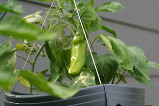 Our nerdiness has only manifested itself with each morning that brings a "Hey, look at this! It's ripening!" or a "Hey, look at that! There's really a tomato growing on our plant!". We're like two little bratty kids in a candy store, giddy with the thrills that growing our first edible wonders can bring. And of course, we're already dreaming and scheming of what we'll add to next year's garden.
